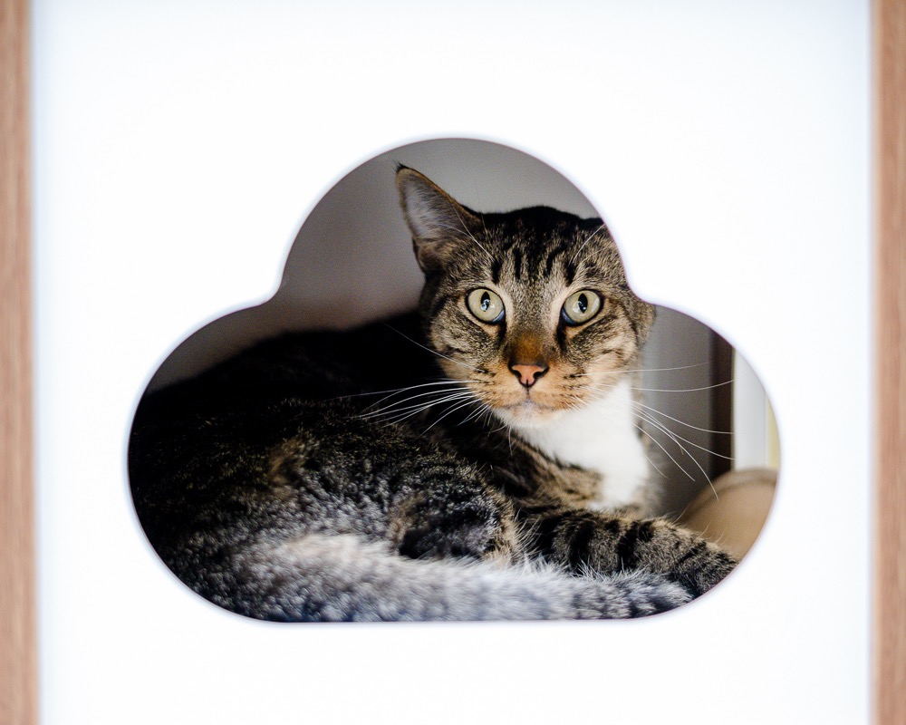 Dobby would love to come home and be your house elf! He is a very special fellow, with a quirky personality. He loves to hang out and people watch. He also LOVES to play, but can be a little spicy from time to time. He would love a family that will give him lots of love, but respect his personal space. Dobby is a five year old, 10 pound Domestic Shorthair.