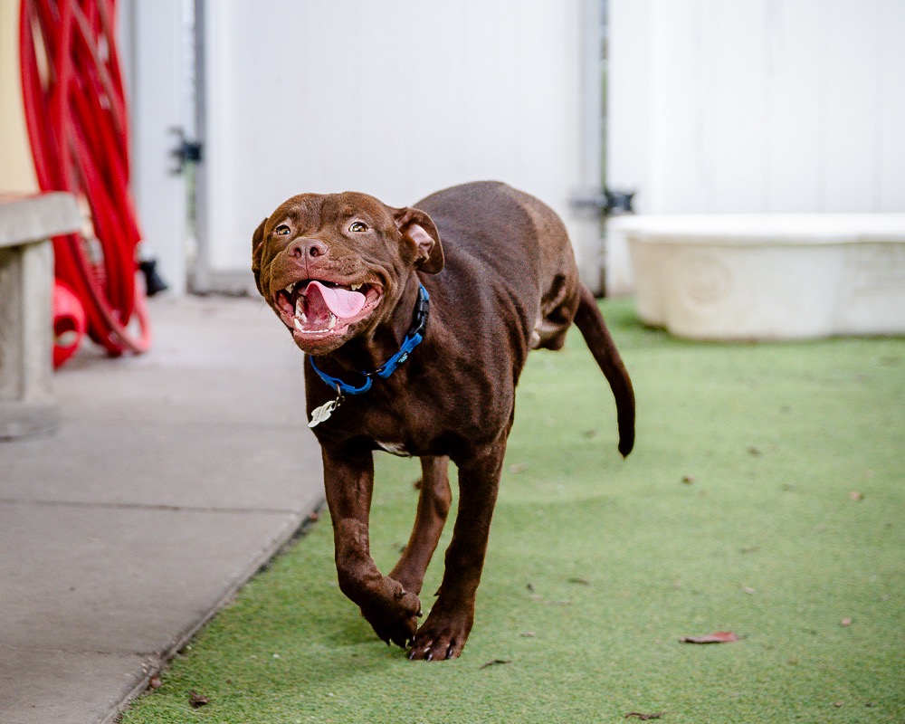 Sweet Potato is a girl that won't be kept down! Despite an injury that required the amputation of her rear leg, she has kept her amazing, sunny attitude and sweet smile. It was not clear what caused the injury, but we suspect she was hit by a car. Our veterinarian team cleaned her up, stitched up a laceration and removed her damaged leg. She is now romping around the yard, playing like the puppy she is. Bring her home and be inspired by her incredible resilience. Sweet Potato is a six month old, 37 pound pit mix. You must own your home to adopt her. Thanks to the Pit Project and her sponsors, Kristy and Leandro Castro, her adoption fee is $75.