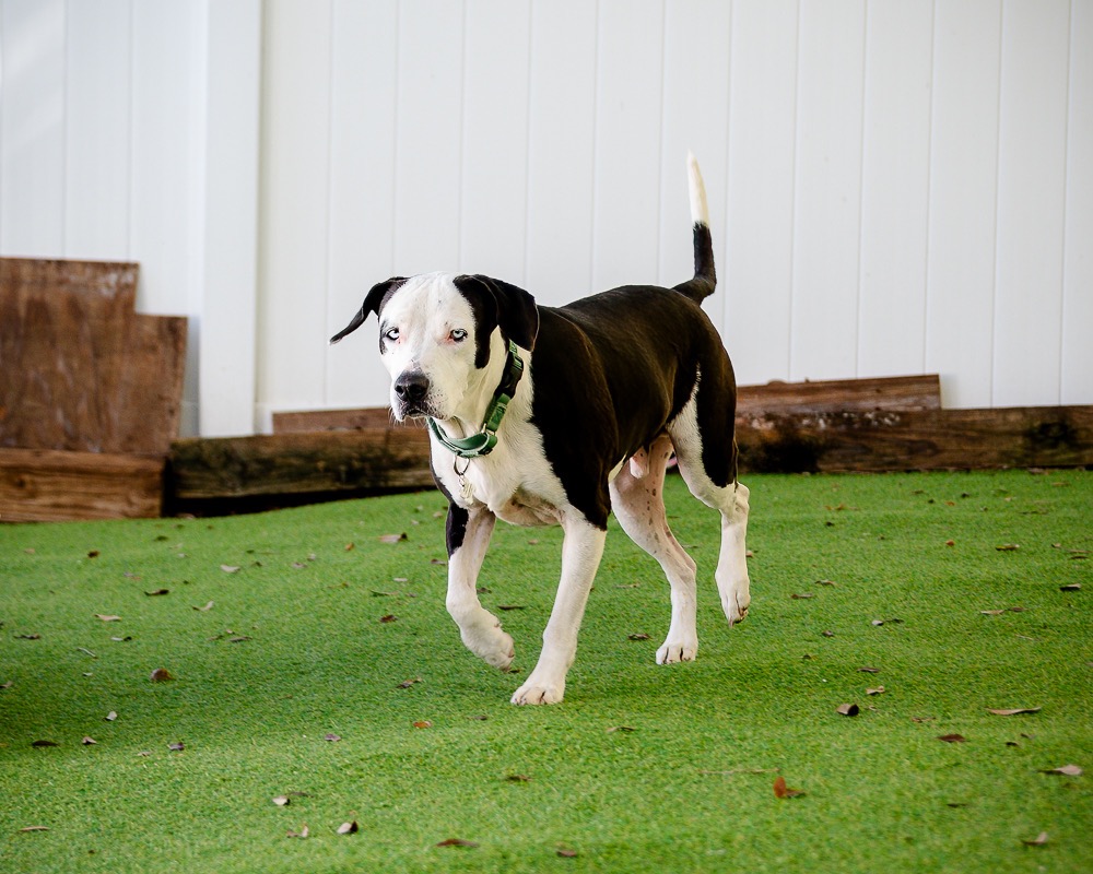 Amos is a 4-year-old, 63-pound All American boy looking for his forever home. He loves spending time in the yard, playing with his toys, and getting his energy out. Amos also enjoys going for walks, exploring the neighborhood, and greeting people along the way. He would do best in a home without small children, where he can enjoy his playtime and walks at his own pace. Amos is a sweet, friendly companion ready to bring joy and fun to the right family.