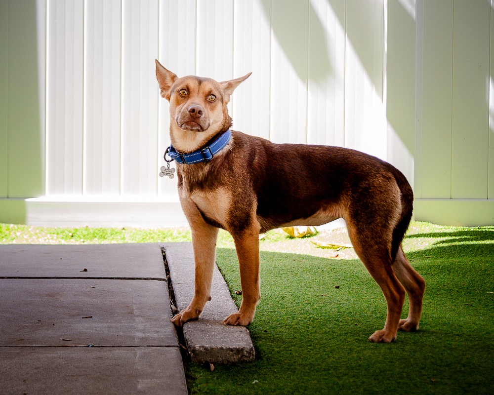 Lexie may seem intense in her photos, but at heart she is an affectionate pup with a great personality! We have been working on her "smize", but she prefers to stare deeply into the camera lens. She is a little timid, but will come around quickly if you promise belly rubs! Lexie is a one and a half year old, All American girl.