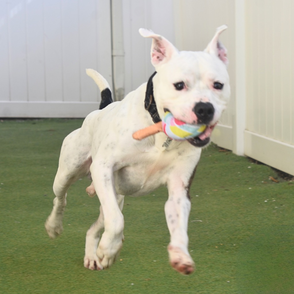 Who needs a cup of coffee when Brew will brew up all the energy you need himself! Brew is an incredibly sweet and playful boy who knows how to have a good time. He loves people and quickly warms up to anyone he meets, making him a loving and devoted companion. When he has his favorite toy, he can’t help but get the zoomies outside, showing off his fun, energetic side. Brew is ready to join the perfect family who will appreciate his playful spirit and love for life! He is a 42 pound, American Bulldog mix. Thanks to the Pit Project and his Guardian Angel Billie Lambert, Brew's adoption fee is $75. You must own your home to adopt him.