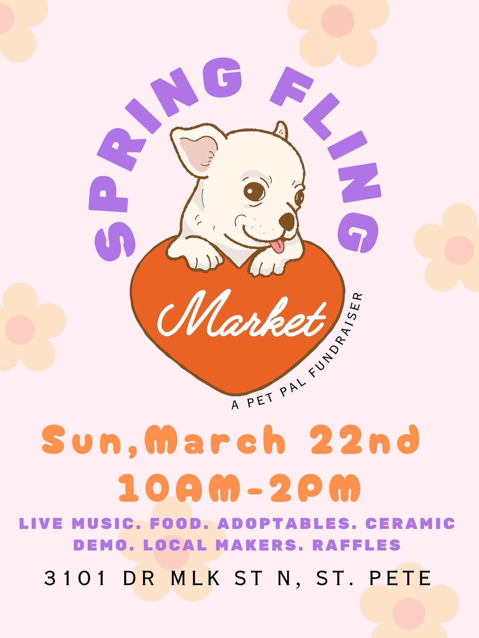 Join us for a paw-some day of shopping, music, and furry friends at the Spring Fling Market benefiting Pet Pal Animal Shelter!