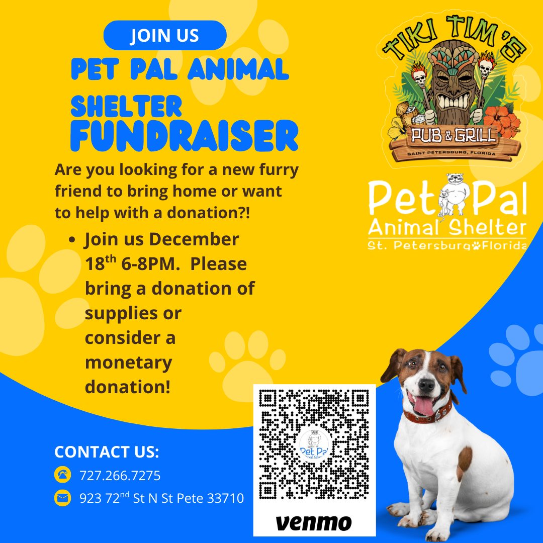 Join us on Thursday, December 18th, for Pet Pal Animal Shelters Fundraiser! Enjoy live music, awesome homemade eats, drinkssss and maybe....just maybe bring home a new (fur) family member!!